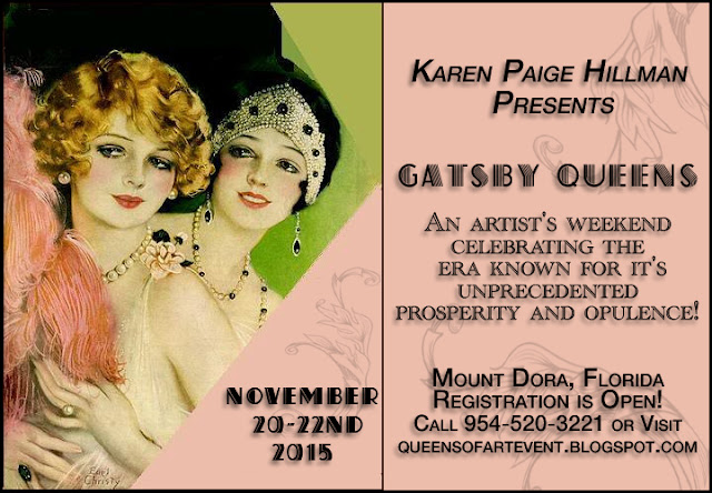 We will also welcome my talented artist friend Judy Stafford! As you all know, a Gatsby girl has a full schedule of plans, parties and speak easy engagements to attend, so Judy will teach you to create your own divine day timer featuring removable pages and an opulent Gatsby Queen on the front cover!