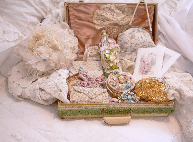 Judy Stafford is a self taught artist who loves all mediums of creating! Her business called “Twinkle Toes” boasts a full line of “bling embellished” shoes featuring the finest of crystals and laces. The love of this work, and of all things vintage, extended her art into